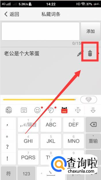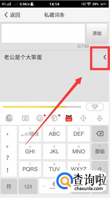然后就进入【私藏词条】的界面啦,输入内容后,点击【添加】。