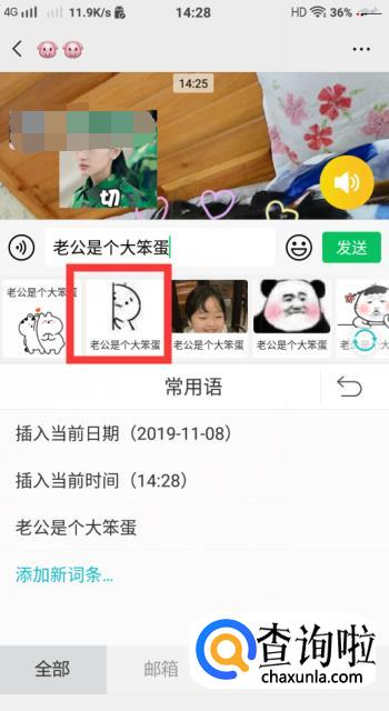 添加好了自己设置的词条之后,就是怎么使用使用这个词条了。点击小章鱼,点击【常用语】,就可以看到刚刚编辑的词条啦。