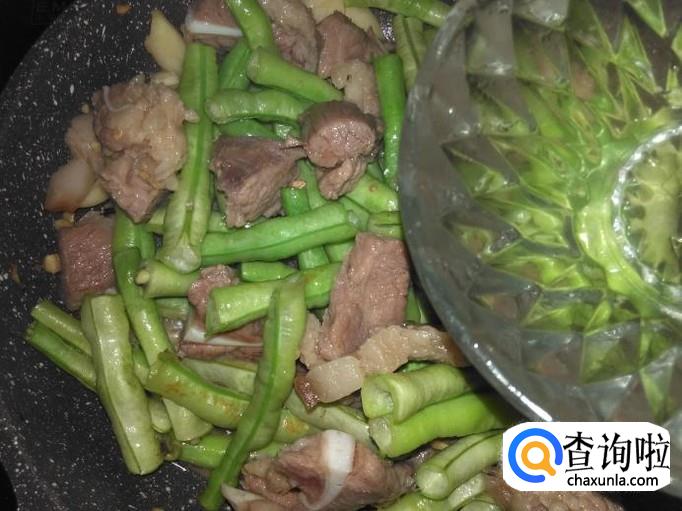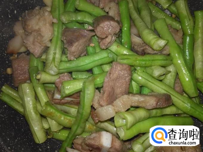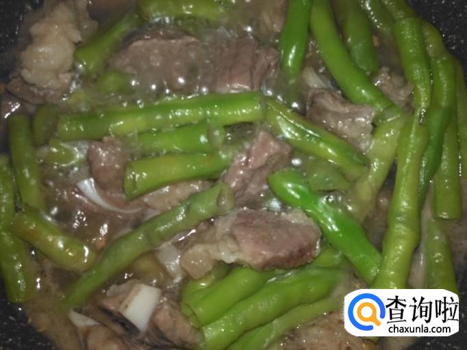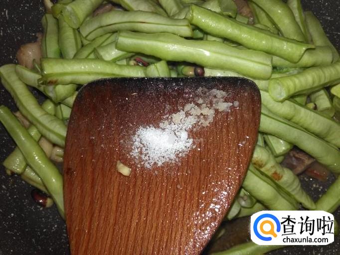 打开锅盖,加几粒精翻炒一下,熄火。非常清甜好吃的猪肉炖豆角就做好了。