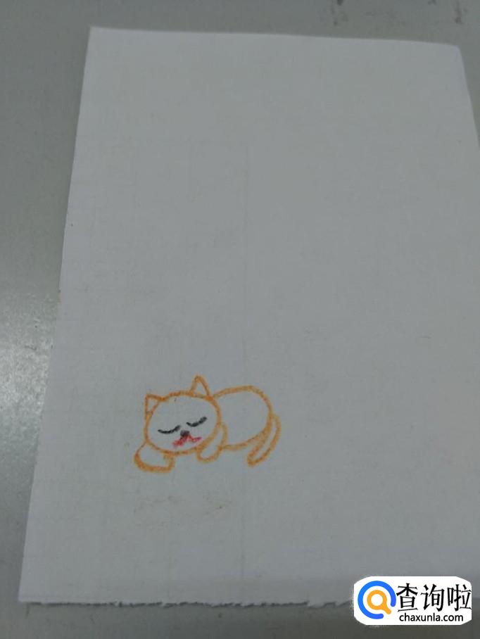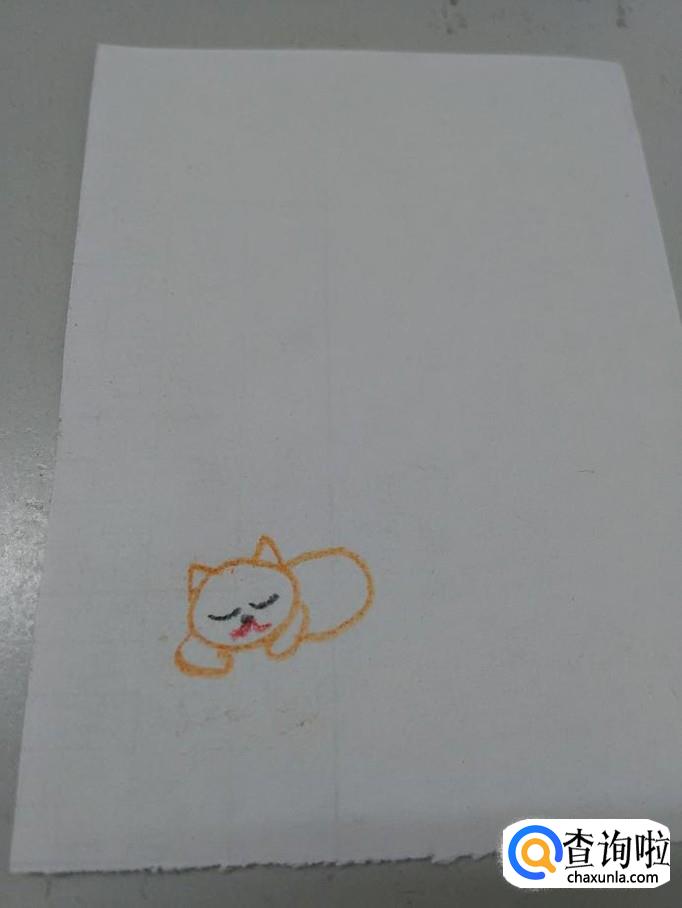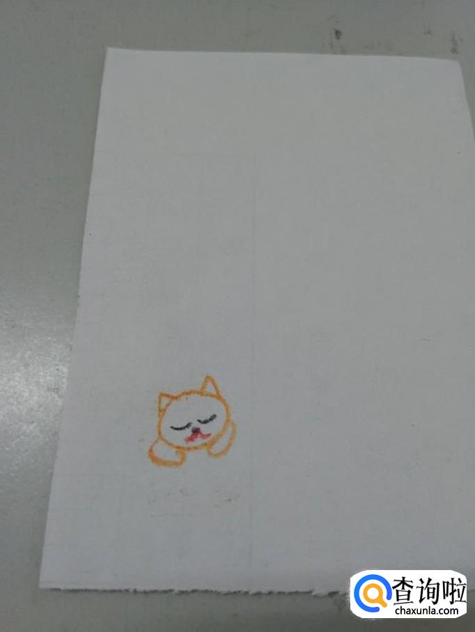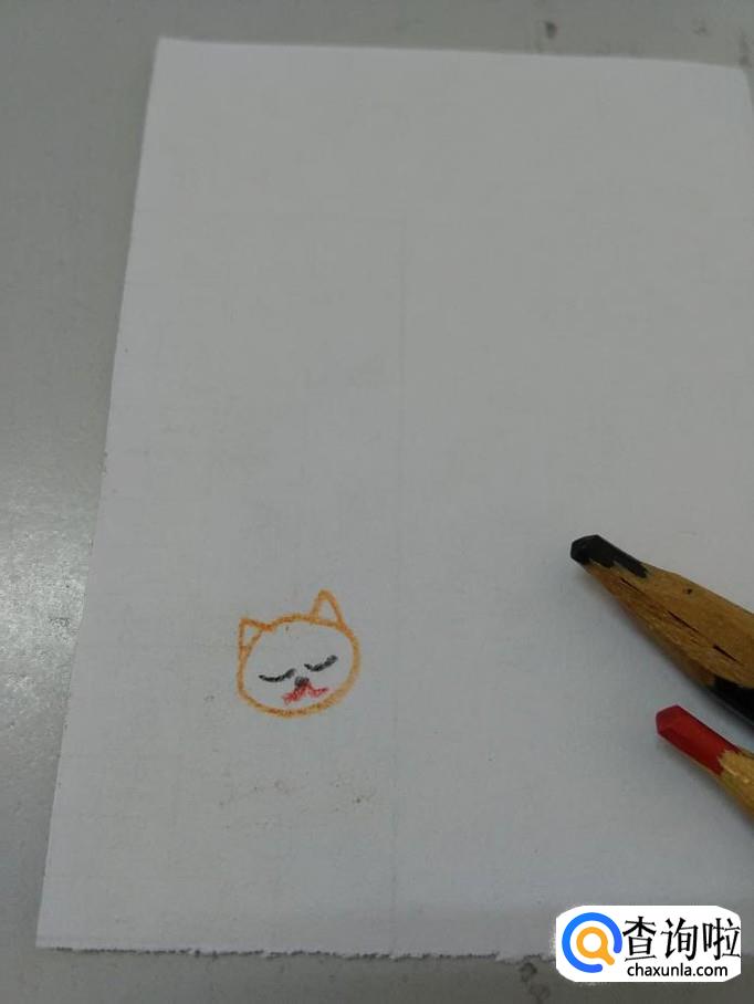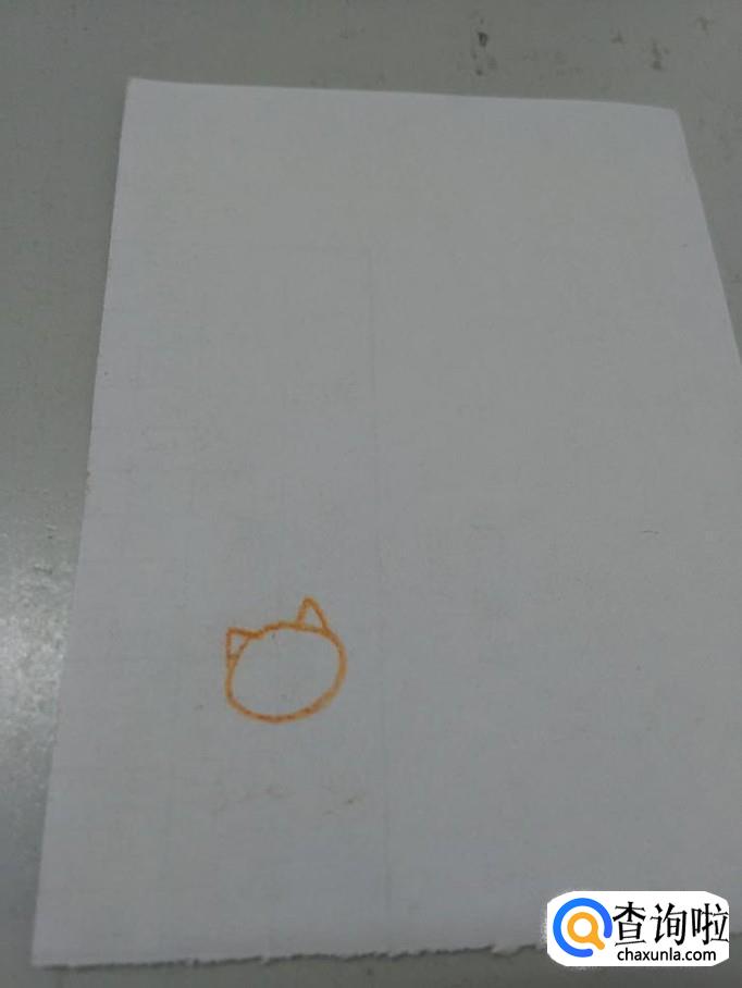 先用桔色在纸上画一个椭圆形,表示小猫的头。