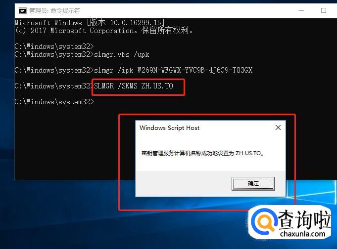 窗口弹出显示:密钥管理服务计算机名成功的设置为zh.us.to