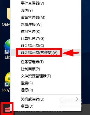 接着在开始菜单上点击右键,然后选择命令提示符以“管理员”身份运行。