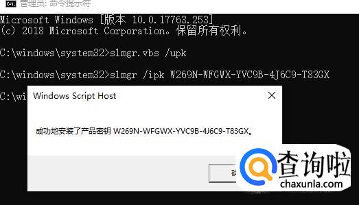 接着输入以下命令:slmgr /ipk W269N-WFGWX-YVC9B-4J6C9-T83GX