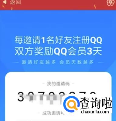 新人在注册qq时,输入你的邀请码,双方就可获得qq会员3天的奖励。