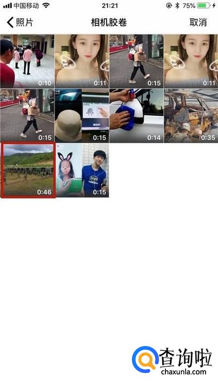 然后选择一个我们想要上传的视频并点击它,如下图所示。