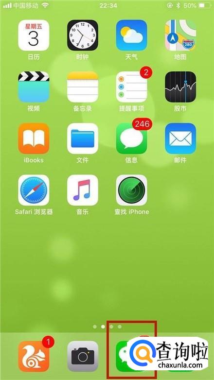 首先在我们的手机桌面上找到微信并点击它,如下图所示。