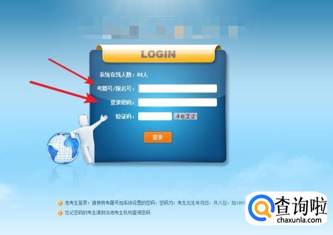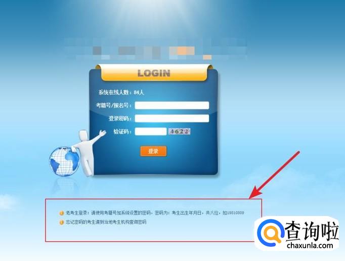 进入网站输入考生号和密码;