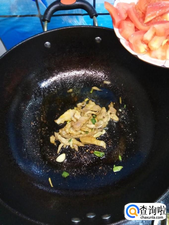 炒锅中放入适量油,油热后,将肉丝放入锅中炒香。