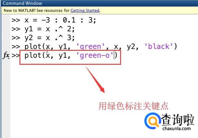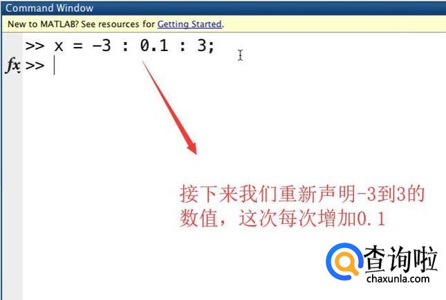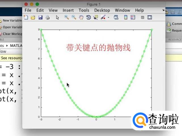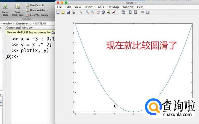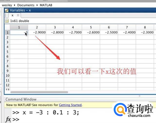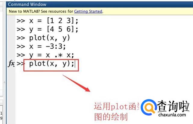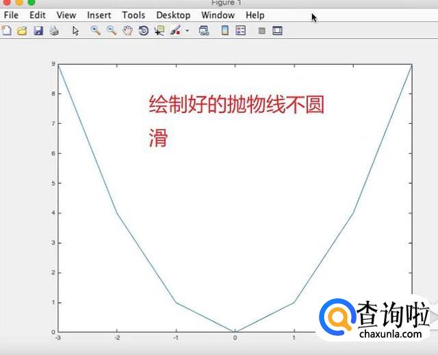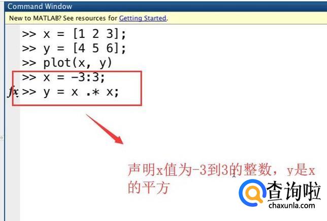 首先我们打开Malab声明X和Y的坐标点值,X为-3到3的整数,每次增加1,Y为X的平方,如下图所示