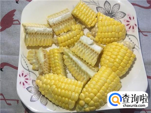 玉米去掉玉米须,清洗干净,然后切成小块。