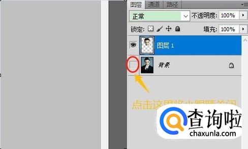 接着我们按住快捷键Ctrl+J,将头像部分摘出来新建一个图层,下图图层1就是,然后我们将背景图层隐藏(也就是去掉前面的小眼睛),此时我们就只能看到人物头部了