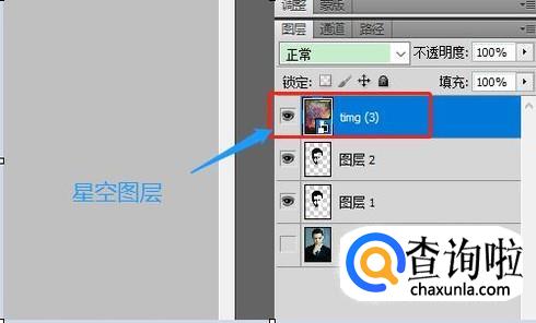 选取完成以后再次按住快捷键Ctrl+J复制新的图层2,如下图;然后我们在电脑桌面将星空图片拖动进来,此时右侧图层处又会增加新的图层,位于最上面,如图所示