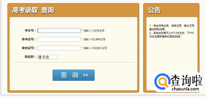 输入你的“考生号”--“准考证号”--“身份证号”,然后点击查询。如图所示: