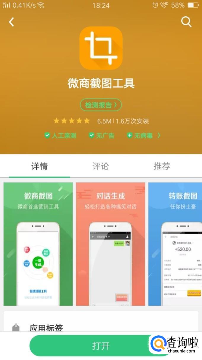 首先打开手机软件商店,搜索安装“微商截图工具”。