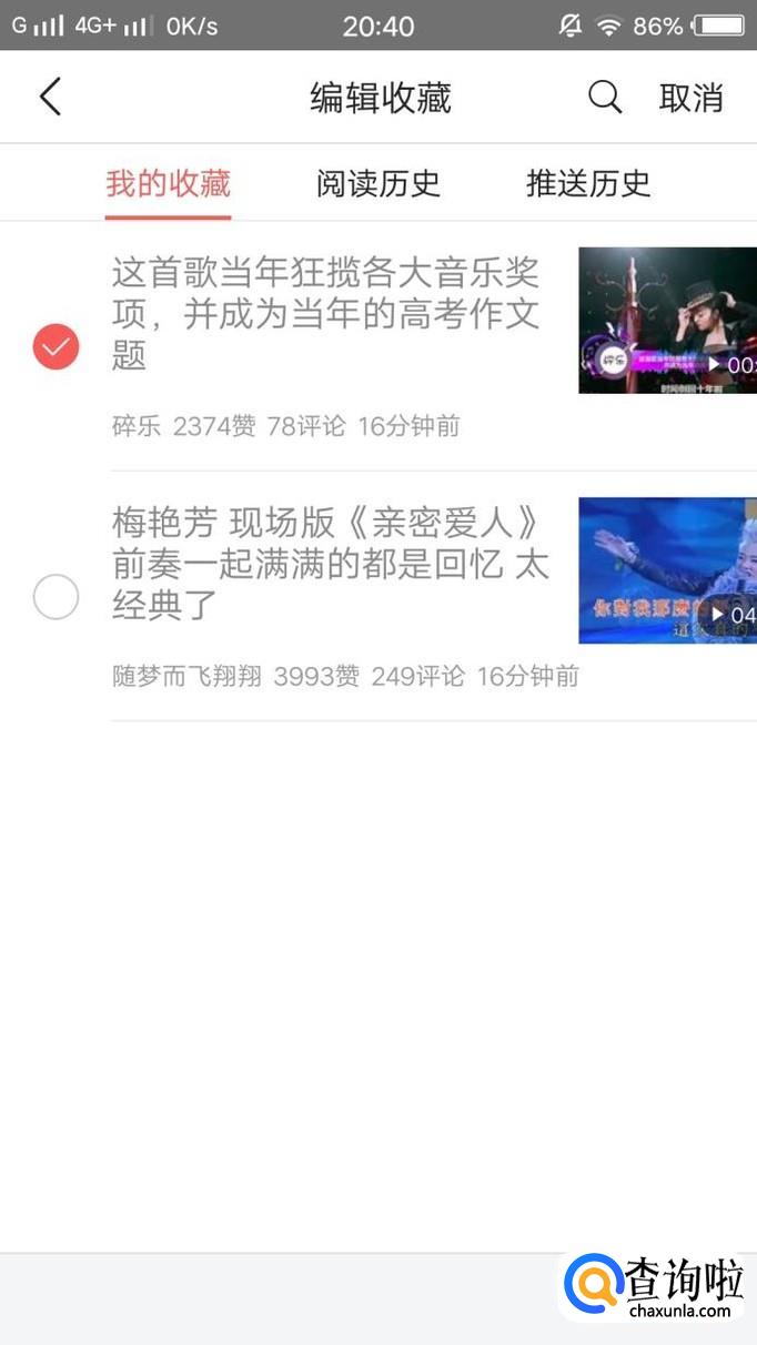 如果你要取消收藏,就点“收藏”的图标,进入“收藏/历史”界面;