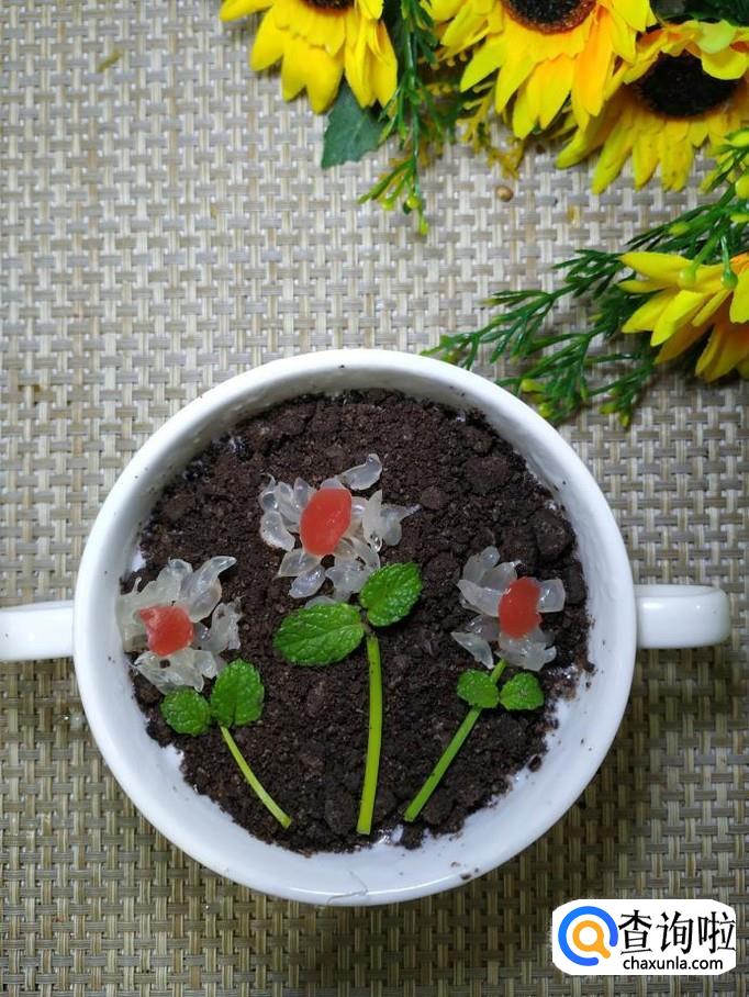 准备适量薄荷叶做叶子,然后用小葱做花茎,摆好造型之后就可以吃了,营养美味,小孩子看了胃口大开!