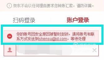 京东账号因以下原因被封禁无法解封: