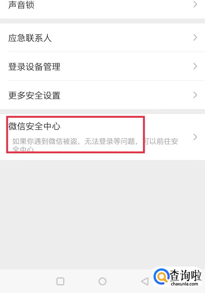 点击进入账号与安全后再点击“微信安全中心”。