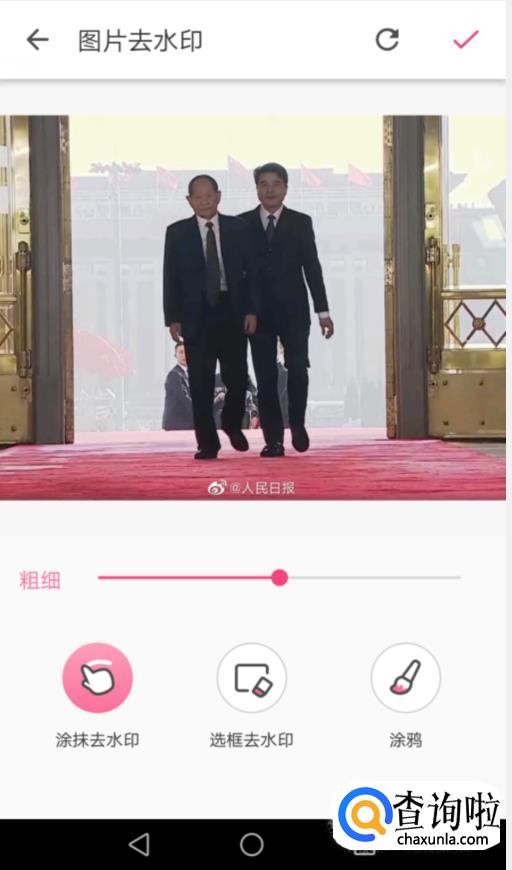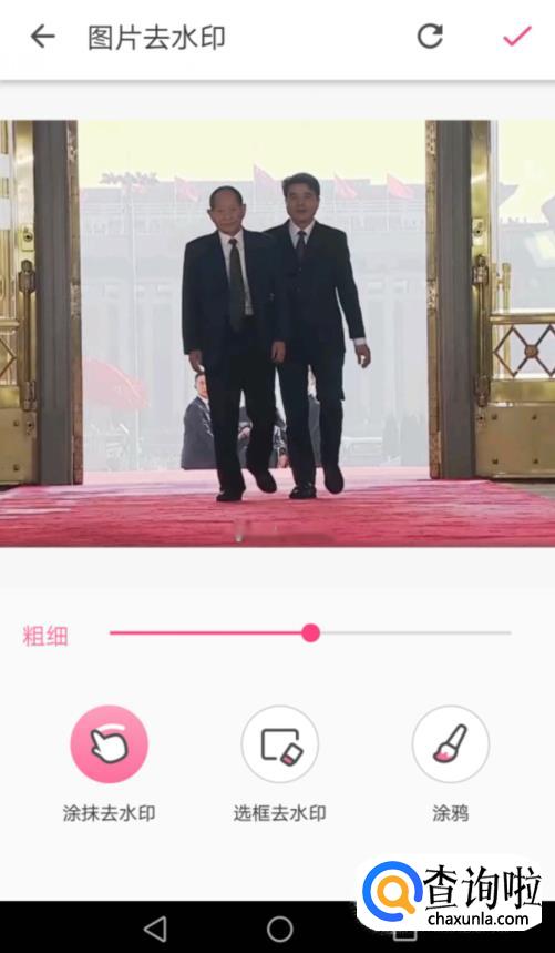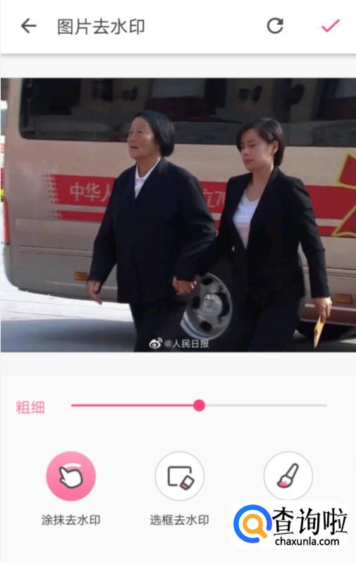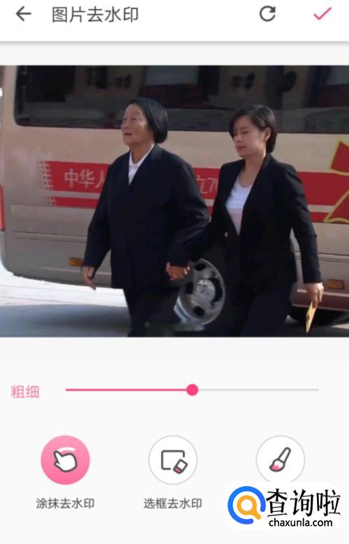 在该页面中按个人要求调整涂抹去水印笔的大小,选择水印的位置,左右拖动,水印就去掉啦。