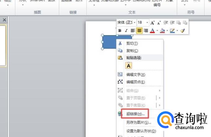 右击这个矩形,弹出的界面,我们点击超链接;