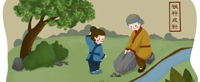 唐朝著名诗人李白,小时候在山中读书,没有完成好自己的学业,就放弃学习离开了。李白来到了一条小溪边,看到一个满头白发的老婆婆,在磨着一根棍子粗的铁棍。他好奇问老婆婆为什么要磨铁棒,老婆婆边磨边抬头表示想将这根铁棒磨成绣花针。李白被她的精神感动,就回去完成学业了。这个故事的含义是只要有毅力,肯下苦功,事情就能成功。