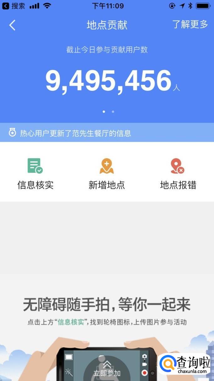 在界面的左上方有一个头像标志,点击头像标志就可以进入如下界面。选择“地点贡献”图标。