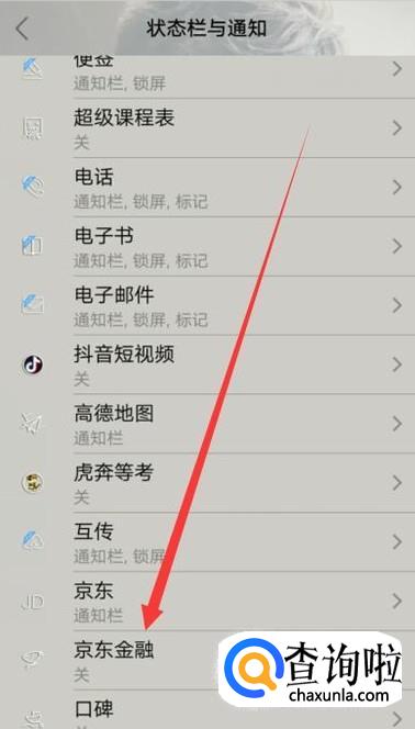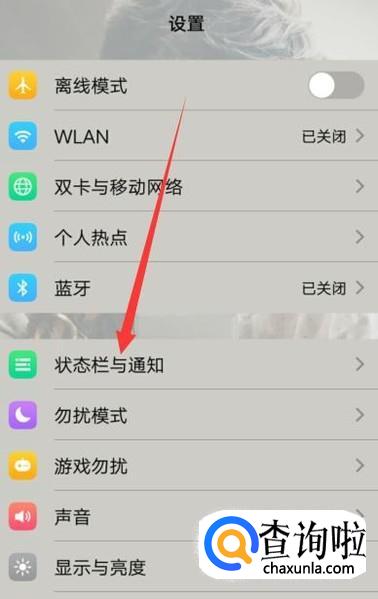 进入之后,点击“状态栏与通知”,点击并进入,如图所示。