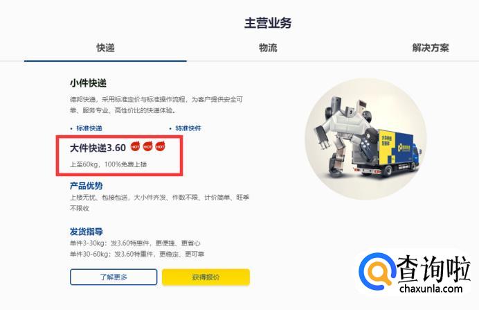 还有一种是3.60特惠件,3公斤以下的按照15元收费,超过3公斤到30公斤以内的按每公斤三元收费。