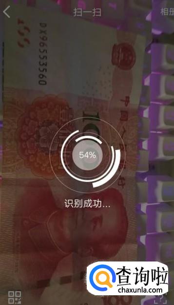 进入之后,用手机扫描一百元的人民币,如图所示。
