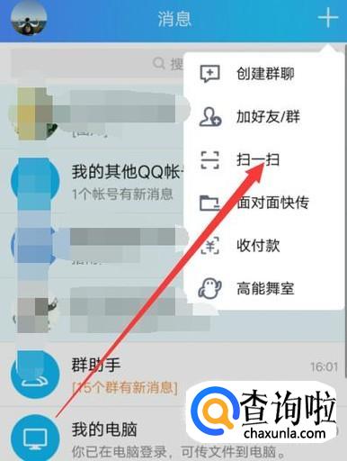 打开之后,选择“扫一扫”,如图所示。