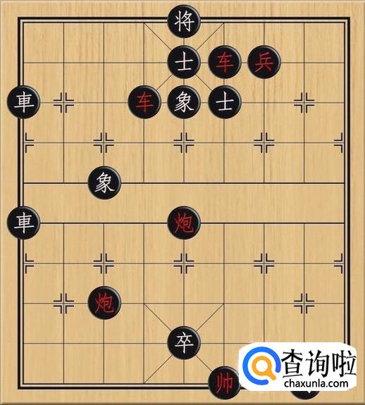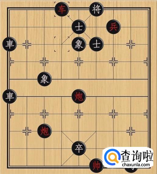 棋局如图,黑方中心卒,无论是走马将军,还是车下来将军,红方都无路可走,双线绝杀,红方防守不了的,只能看进攻了。