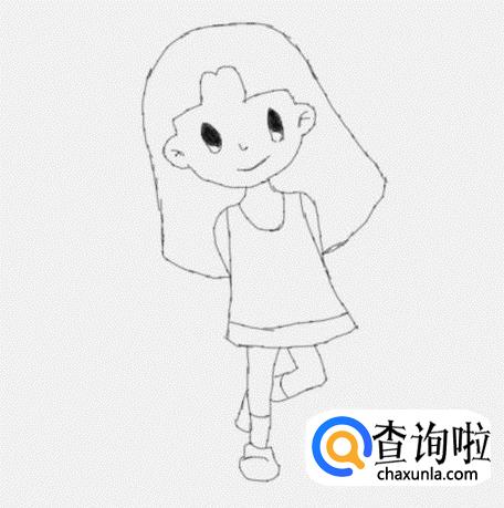 在身体下面画出小女孩的两条腿及脚部,这样小女孩就画好了,如图所示: