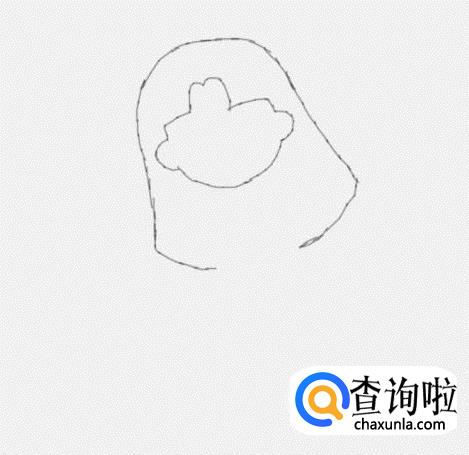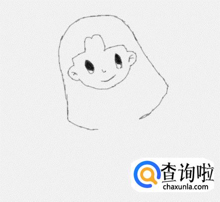 在头发的基础上我们在画出小女孩的面部轮廓,如图所示: