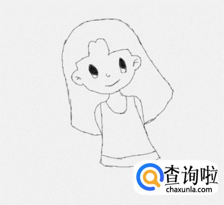 在头发下面画出小女孩的身体和胳膊,如图所示: