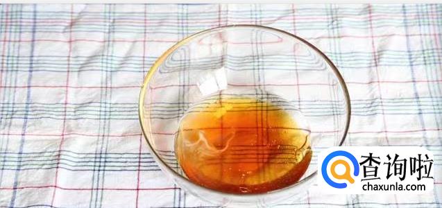 准备好材料。枧水制作:食用碱面和水按1:3的比例混合调制(10克碱面里兑30克水,可以制成40克的枧水)。 把转化糖浆倒入碗里,加入枧水、玉米油搅拌均匀。