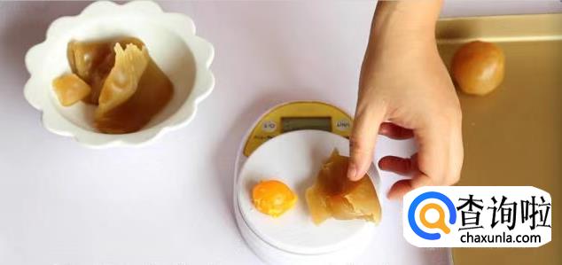 1个小时后取出月饼皮,称重20克。然后把月饼皮揉成球放在一旁。