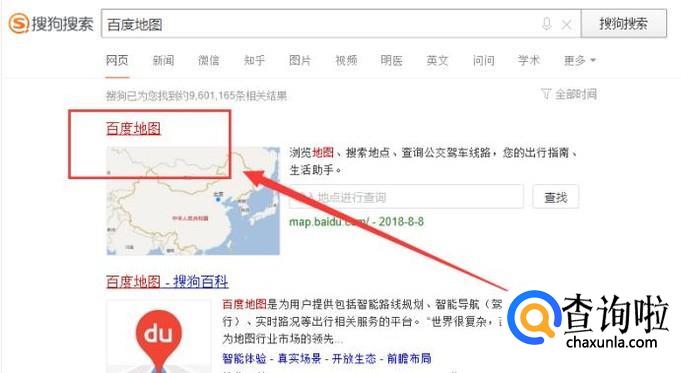 打开搜狗搜索,然后搜索百度地图,点击并进入,如图所示。