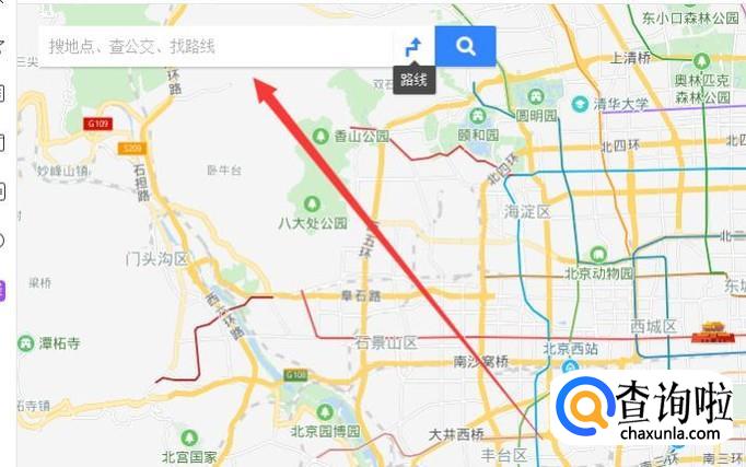在图示位置搜索想要去的地点,以三里屯为例,如图所示。