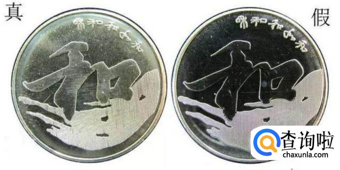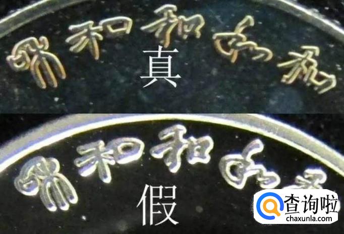 看字形。和字纪念币的字形比较有立体感,尤其是“和”字的立体感特别强;假的纪念币的字形立体感不强,比较扁平化。