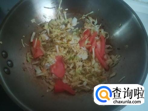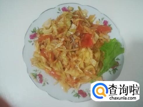 牛心菜500克,西红柿一个,葱、姜、蒜,盐,味极鲜酱油,蚝油,味精等适量。