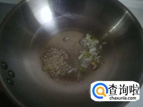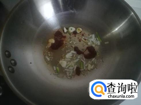 炒锅里放入胡麻油,等有六成熟时,把葱、姜、蒜入锅煸香。