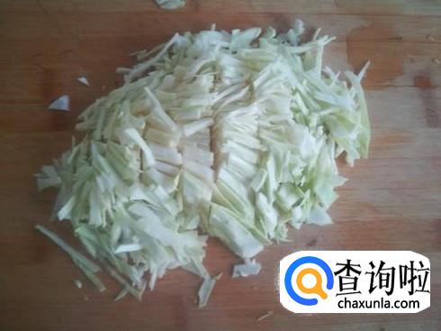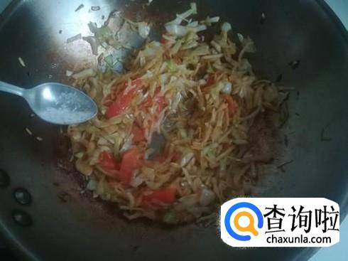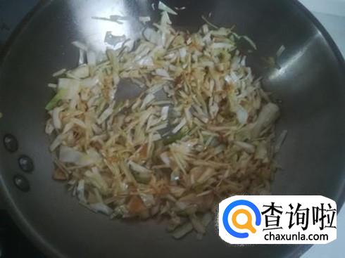 再把牛心菜入锅,调大火快速炒拌至牛心菜断生。