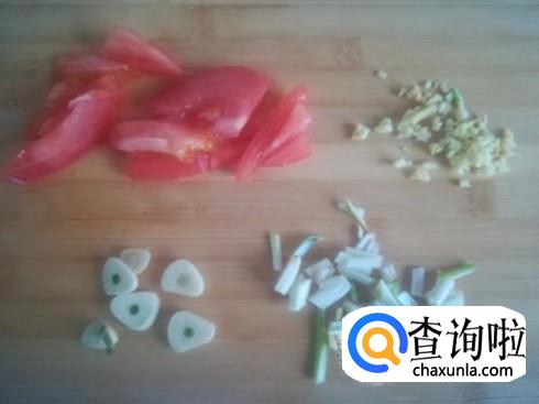把西红柿洗净切成块,葱切葱花,姜切末,蒜切成片。