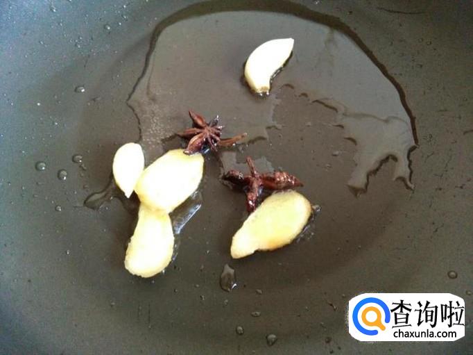 锅烧热,加入适量油,油热后将大料、姜蒜放入锅中爆香
