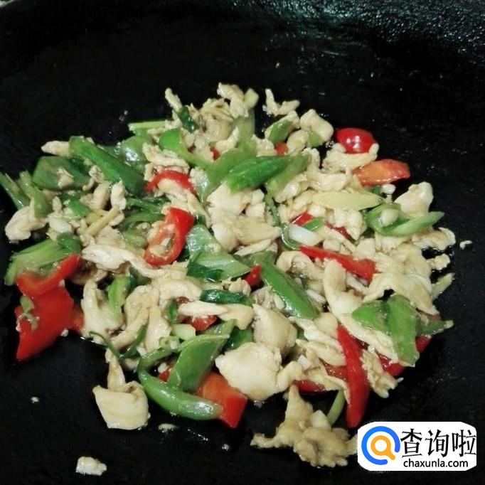 再把鸡胸肉放下去大火爆炒至鸡肉变成白色,再铲出来备用。