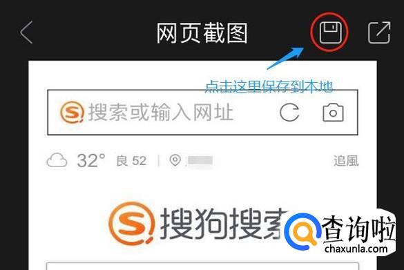 点击以后,系统会自动帮我们截取目前浏览器可见区域部分,我们直接点击右上角的保存图标就能将其保存到相册里了;