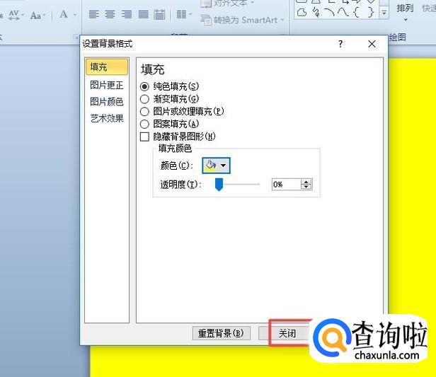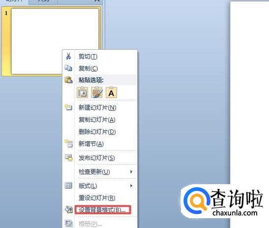 弹出的界面,我们点击设置背景格式;