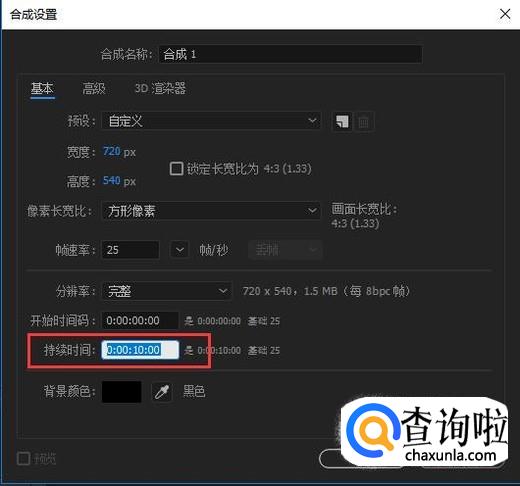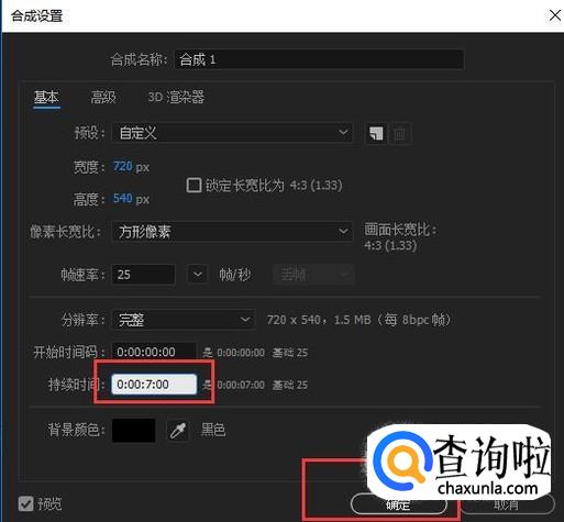 点击之后就会弹出一个和新建合成一模一样的窗口,同样在持续时间选项中修改时间,然后点击确定即可。