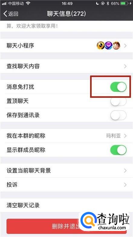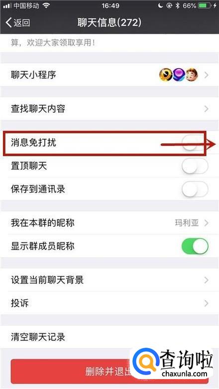 然后点击开启消息免打扰开关,如下图所示。