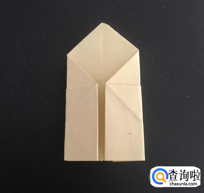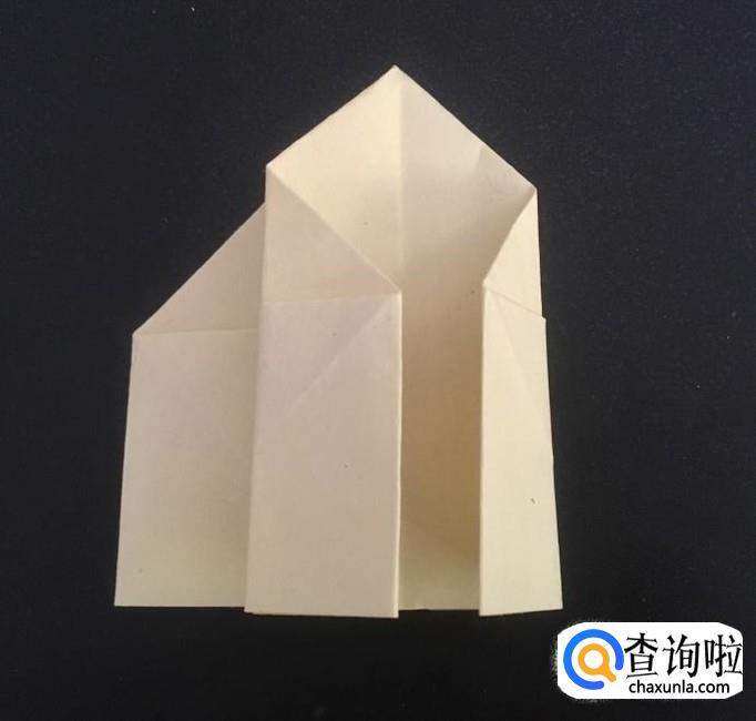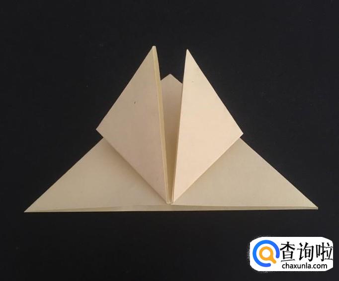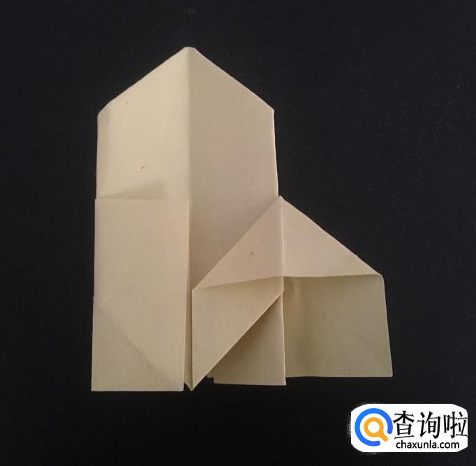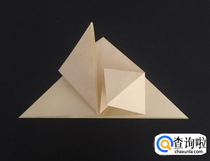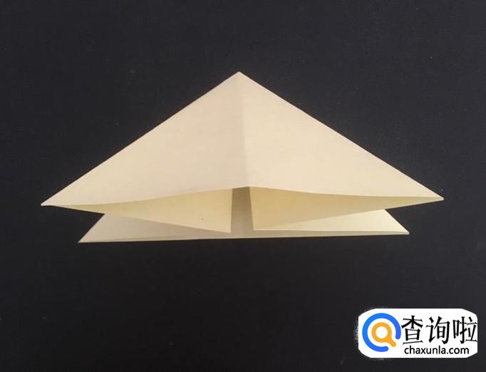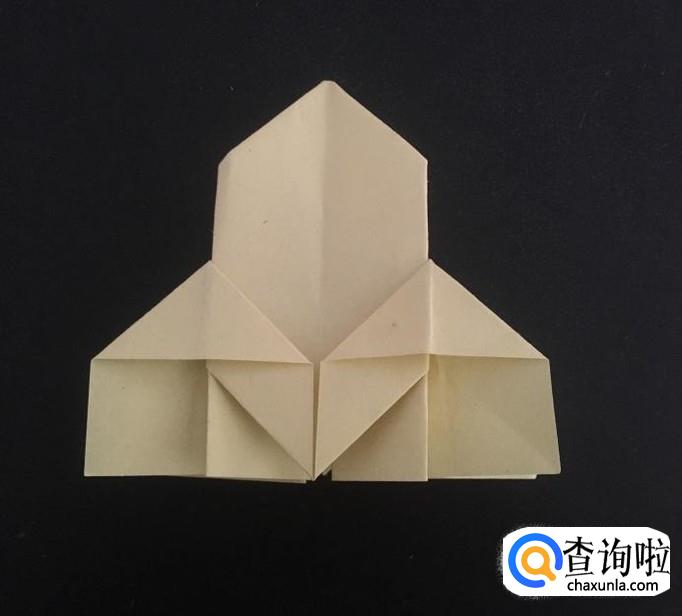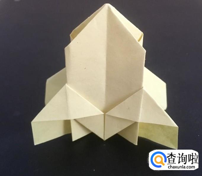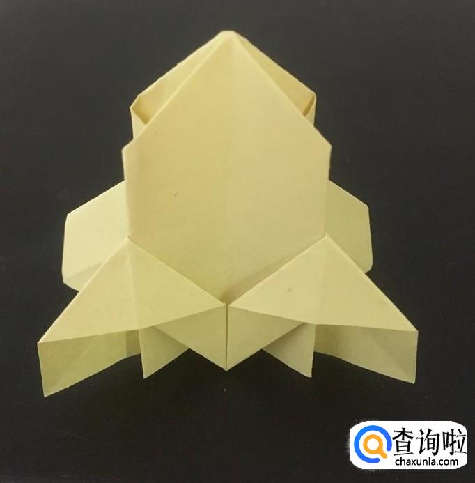 翻回来,打开上一步,向下压折,其他三处也这样折,折成下图形状,此时火箭的形状已经出来了。